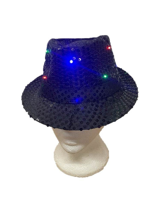 Adult Light Up Black Cowboy Hat with Sequin Trim