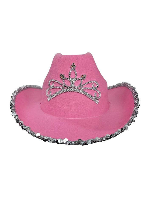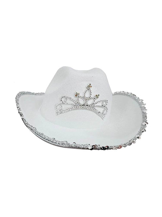 Light Up Tiara White Cowboy Hat with Sequin Trim