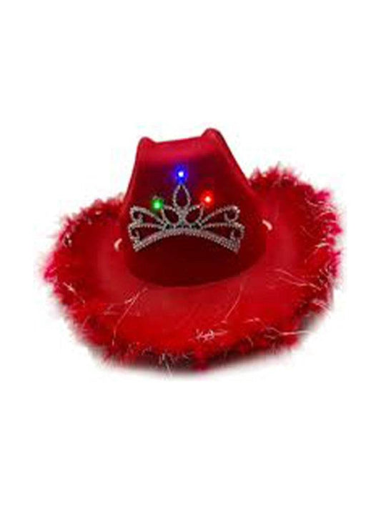 Light Up Tiara Red Cowboy Hat with Fluff Trim