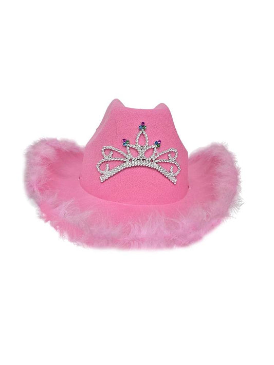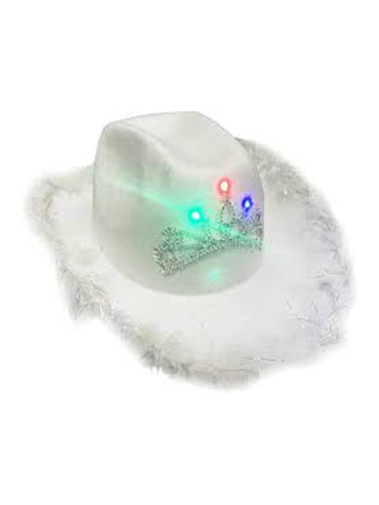 Light Up Tiara White Cowboy Hat with Fluff Trim