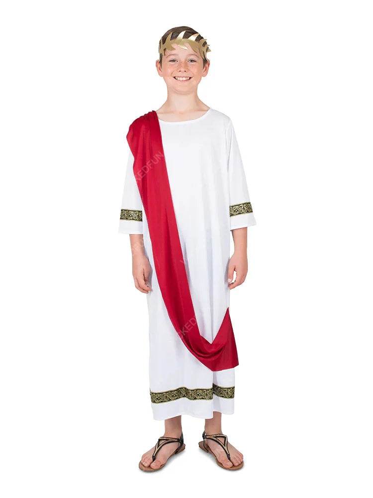Bring ancient history to life with The Fancy Dress Boys Roman Emperor Greek Toga Costume, a timeless ensemble reflecting the nobility and grandeur of the Roman Empire. Ideal for school history day, Roald Dahl Day, Halloween, roleplay, or a themed costume party, this regal outfit includes a white tunic with gold trim, red sash, and matching headband. Perfect for historical costumes, educational fancy dress, Roman day, emperor dress-up, book week, and classical toga attire in the UK. Soft, durable, and full of imagination.